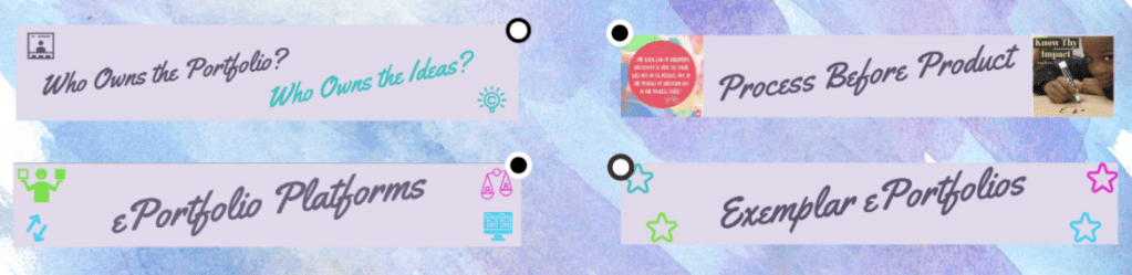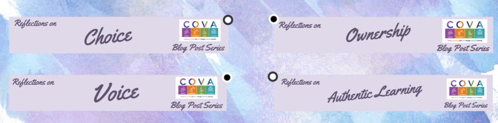 In EDLD 5303 Applying Educational Portfolio, we developed our ePortfolios after considering Who Owns the Portfolio. It was in this course that I learned that the process of building the ePortfolio is just as essential as the final product. We also examined how each element of the COVA framework can cement learning for students. I wrote a brief blog post series reflecting on Choice, Ownership, Voice and Authentic Learning.