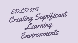 Creating Significant Learning Environments, EDLD 5313, has been an intensive learning experience that shed some light on many questions I had throughout the previous courses. This helped clarify for more a bit more of HOW to create a significant learning environment. Each week we had a Zoom meeting, a discussion post and an assignment due.…